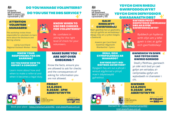 Ydych chi'n rheoli gwirfoddolwyr? Ydych chi'ndefnyddio'r gwasanaeth DBS?
